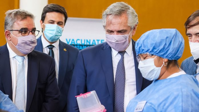 La mayoría de los argentinos y argentinas están siendo inmunizados por vacunas SputnikV y Sinopharm, cuyos cargamentos son exhibidos mediáticamente cuando aterrizan en el país, imágenes contrastantes con el Jefe del Comando Sur de EE.UU. en uniforme de combate recorriendo las instalaciones militares de Tierra del Fuego y requiriendo explicaciones sobre su ampliación. EE.UU. retiene 900.000 vacunas que le corresponden a la Argentina.